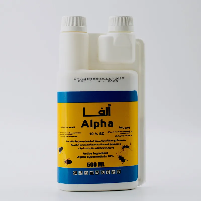 ألفا 10% SC: مبيد حشري مركز فعّال من مجموعة البيرثرويدات، يستخدم لمكافحة الحشرات الطائرة والزاحفة مثل الذباب، البعوض، الناموس والصراصير، ويتميز بسرعة المفعول وفعالية طويلة الأمد، مناسب للاستخدام في المنازل، المزارع والمخازن.</p>