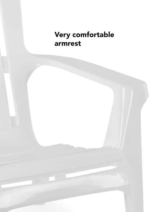 كرسي الشاطئ – كرسي بلاستيك مريح بظهر مرتفع ومساند عريضة، قابل للتكديس وسهل الاستخدام في الداخل والخارج.