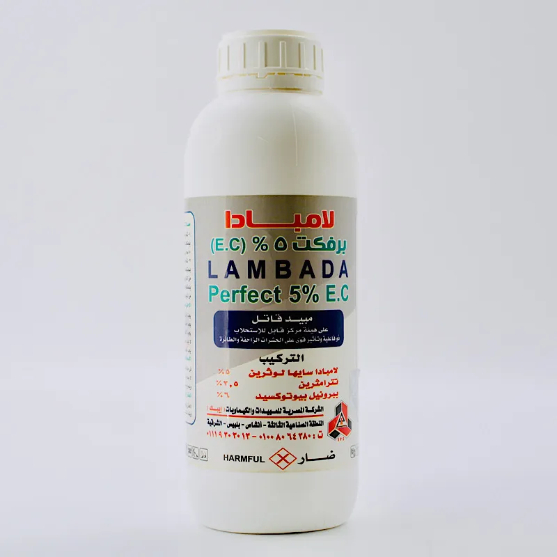 لامبادا بيرفكت 5% EC: مبيد حشري مركز فعّال ضد الحشرات الطائرة والزاحفة مثل الذباب، البعوض، والناموس، يتميز بسرعة التأثير وفعالية عالية، مناسب للاستخدام في المنازل، المزارع والمخازن.
