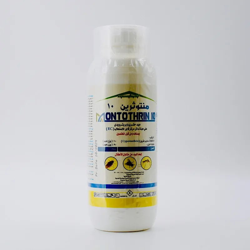 مونتوثرين 10%: مبيد حشري مركز فعّال لمكافحة الحشرات الطائرة والزاحفة مثل الذباب، البعوض، الناموس والصراصير، يتميز بسرعة المفعول وفعالية عالية، مناسب للاستخدام في المنازل، المزارع والمخازن.